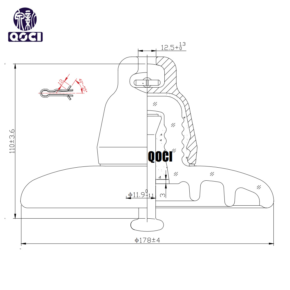 - Material: Glass Dielectric , Forged steel cap & pin